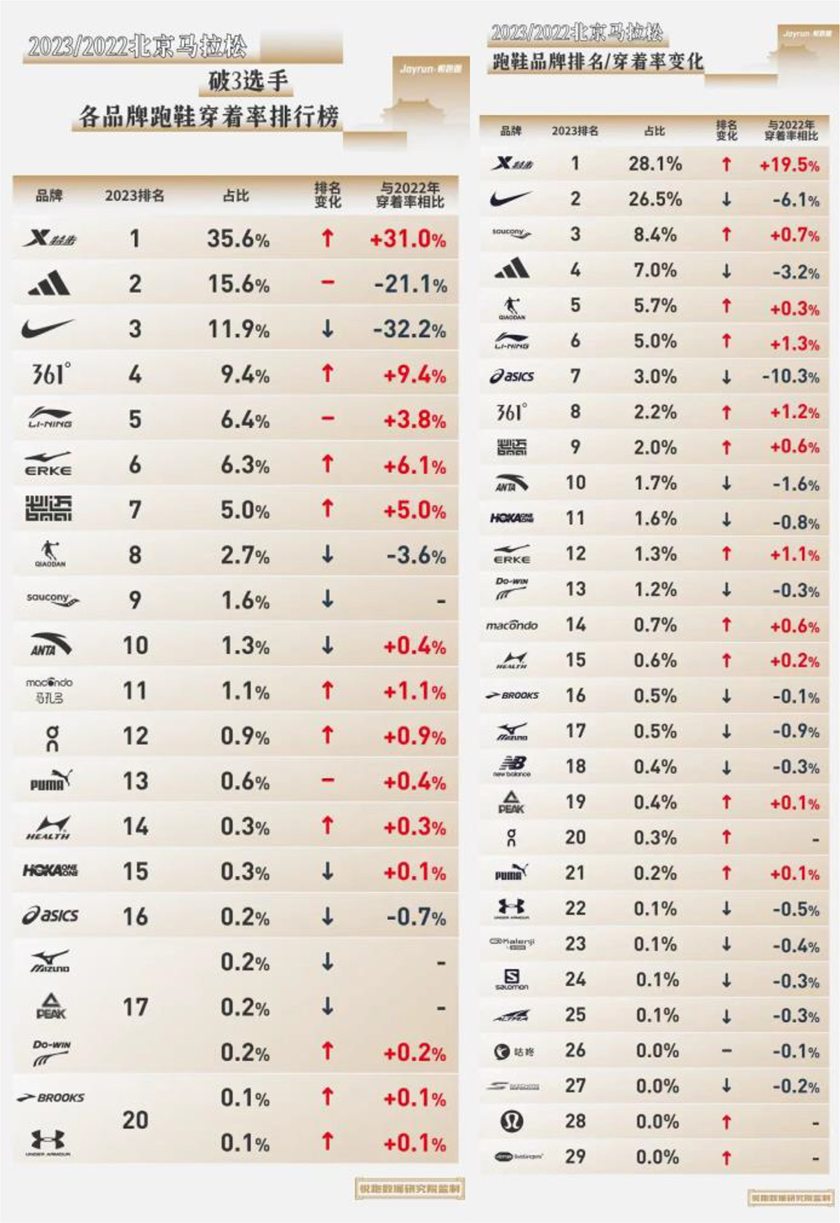 | Xtep's wear rate ranks first among sub-3-hour athletes at the Shanghai Marathon | Xtep claims the top position in both the sub-3 hour wear rate and overall wear rate among finishers of the Beijing Marathon |