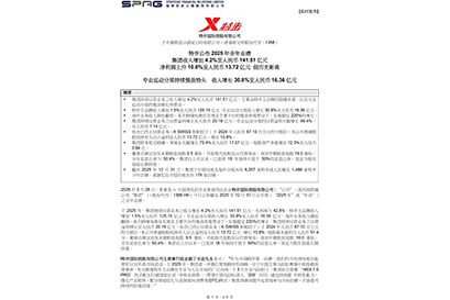 特步公布2025年全年业绩,集团收入增加4.2%至人民币141.51亿元,净利润上升10.8%至人民币13.72亿元创历史新高,专业运动分部持续强劲势头,收入增长30.8%至人民币16.36亿元