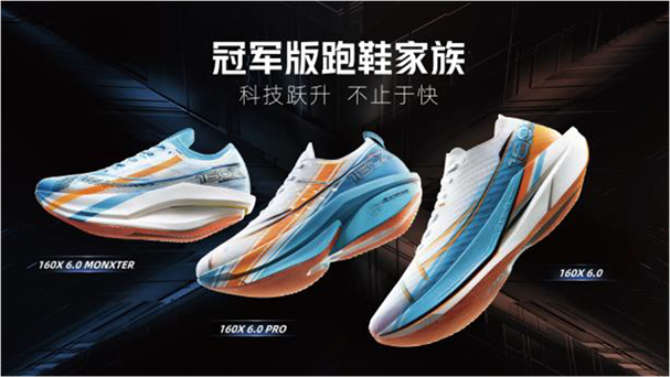 「XTEP POWER動能科技升級—GT700碳板」被稱為「黃金碳板」,此為特步在碳板科技領域的革命性 突破。「XTEP ACE輕彈科技升級—射胚發泡」為跑鞋中底材料的創新技術,革新跑鞋的輕彈體驗。搭載兩大核心科技的「160X 6.0 PRO」的後跟著力點略微後移,對跑者的跑法和配速更寬容,且較上一代擁有更強的回彈和抗衰減性能,回彈性提升6.1%,保持42公里全程高效回彈,也令跑鞋的跑步經濟性提升4%,讓跑者節省近兩公里的體力,同時減重近20%;而「160X 6.0 MONXTER」為「160X」系列有史以來最激進的產品,將激發跑者的速度極限,全球限量發行2,000雙。憑藉這項科技突破,特步已走在跑鞋科技的前沿,在世界舞台上彰顯中國體育品牌於科技研發和產品創新上的自信和能力。