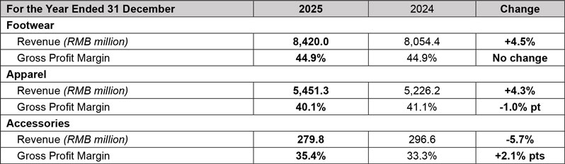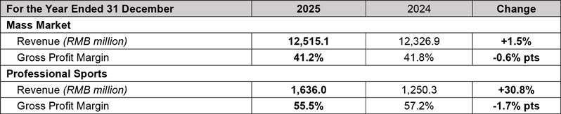 Fueled by Saucony’s robust revenue growth, the professional sports segment delivered a strong financial performance in 2025. Revenue rose by 30.8% year on year to RMB1,636.0 million, accounting for 11.6% of the Group’s total revenue. The segment also recorded a significant rise in profitability, with operating profit reaching RMB114.5 million, a substantial increase from RMB78.2 million in the prior year.